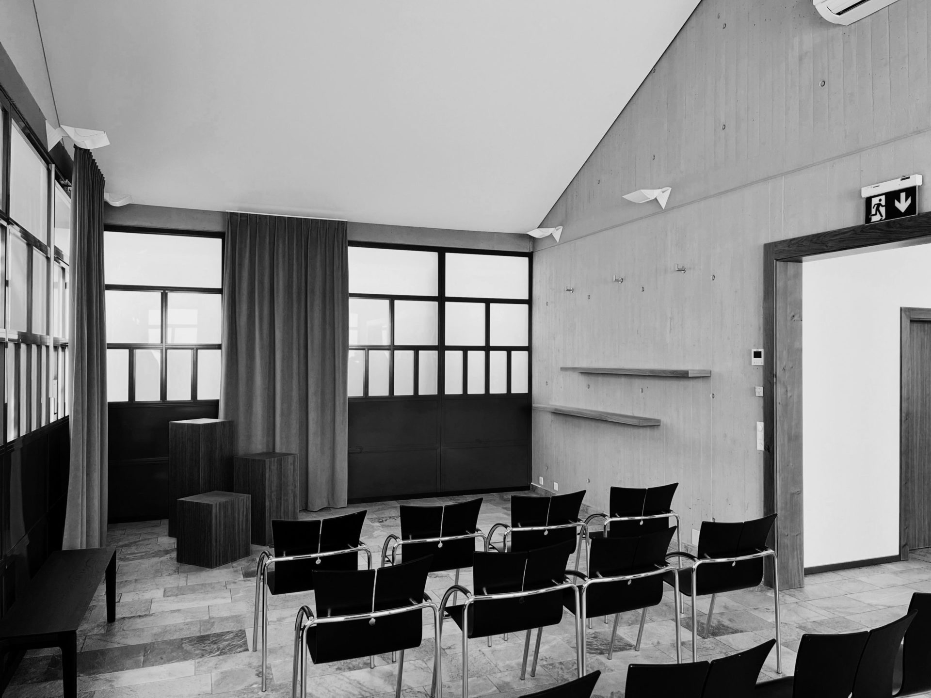 D’autre part, l’aspect général du bâtiment et son aménagement intérieur ne répondaient plus aux attentes actuelles. L’esthétique était datée (décoloration des façades) et les espaces, encombrés d’éléments fixes, manquaient de flexibilité. L’organisation des lieux compliquait le flux des personnes lors des cérémonies, un aspect crucial pour un lieu de recueillement. L’objectif était donc double : assainir la structure et moderniser la fonction.